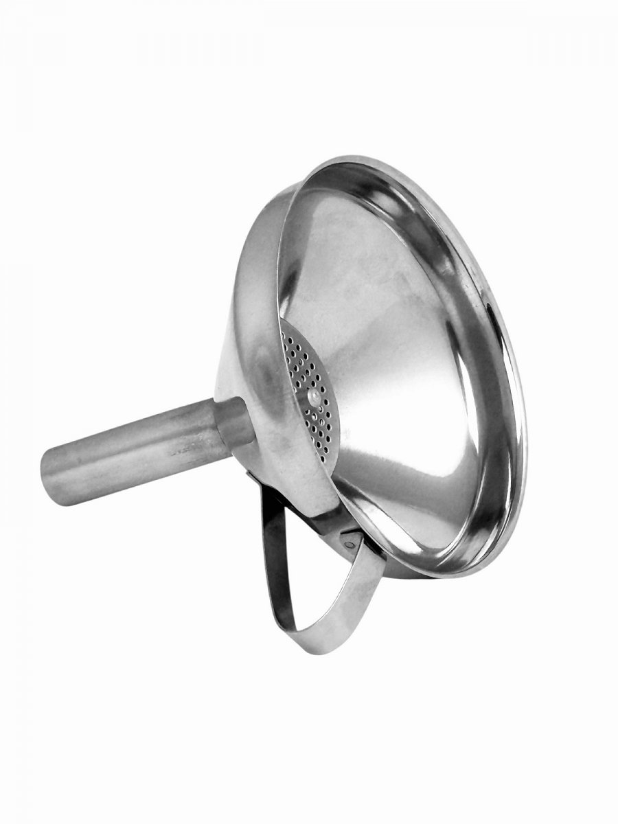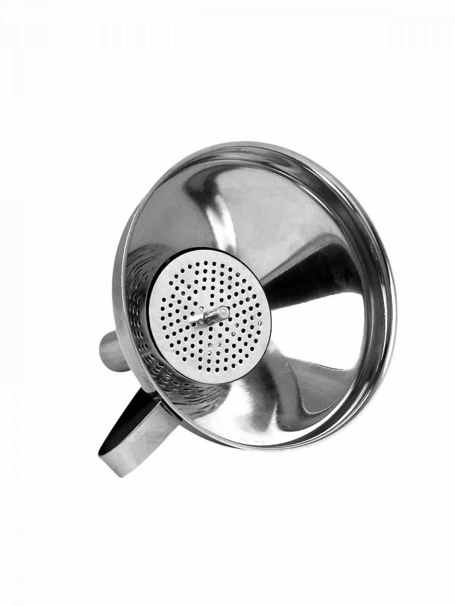 Лійка з ручкою з н/ж сталі з широким шийкою та фільтром 10,5 см