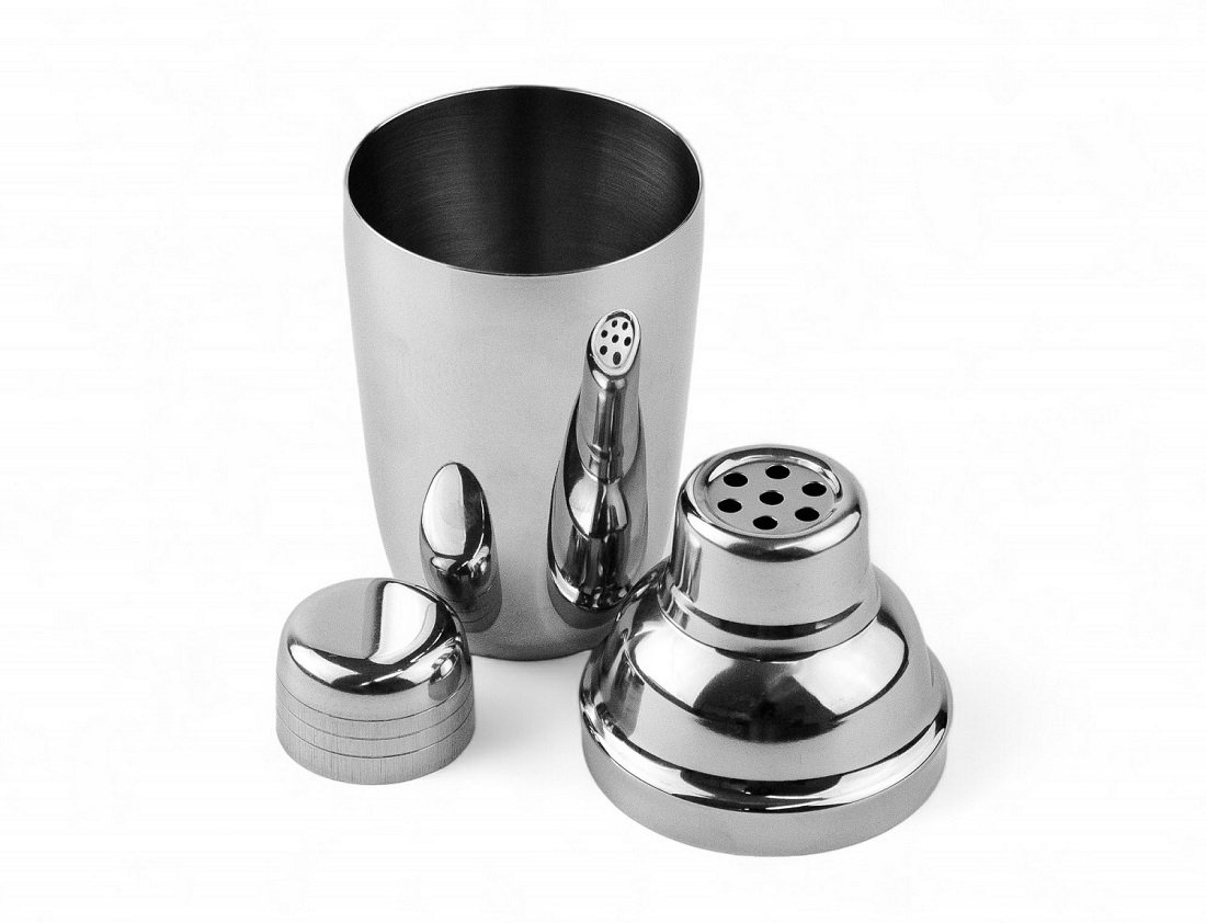 Состоит из трёх металлических частей: шейкерного стакана, фильтра-сита и крышки-колпачка