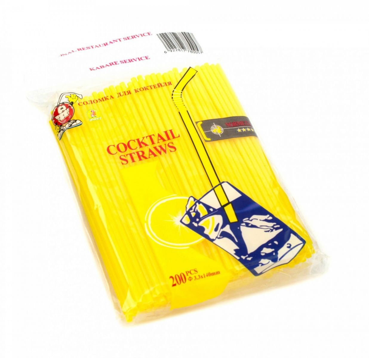 Трубочка для коктейлю кругла жовта 3×140 мм 200 шт