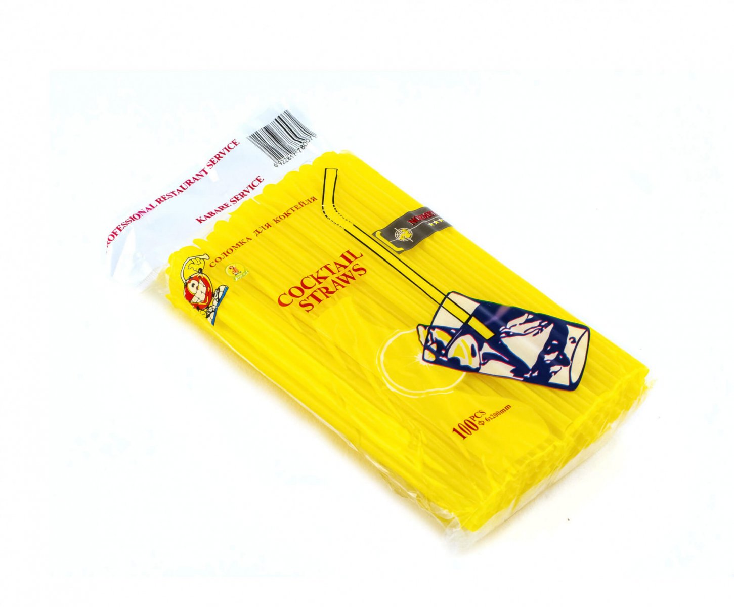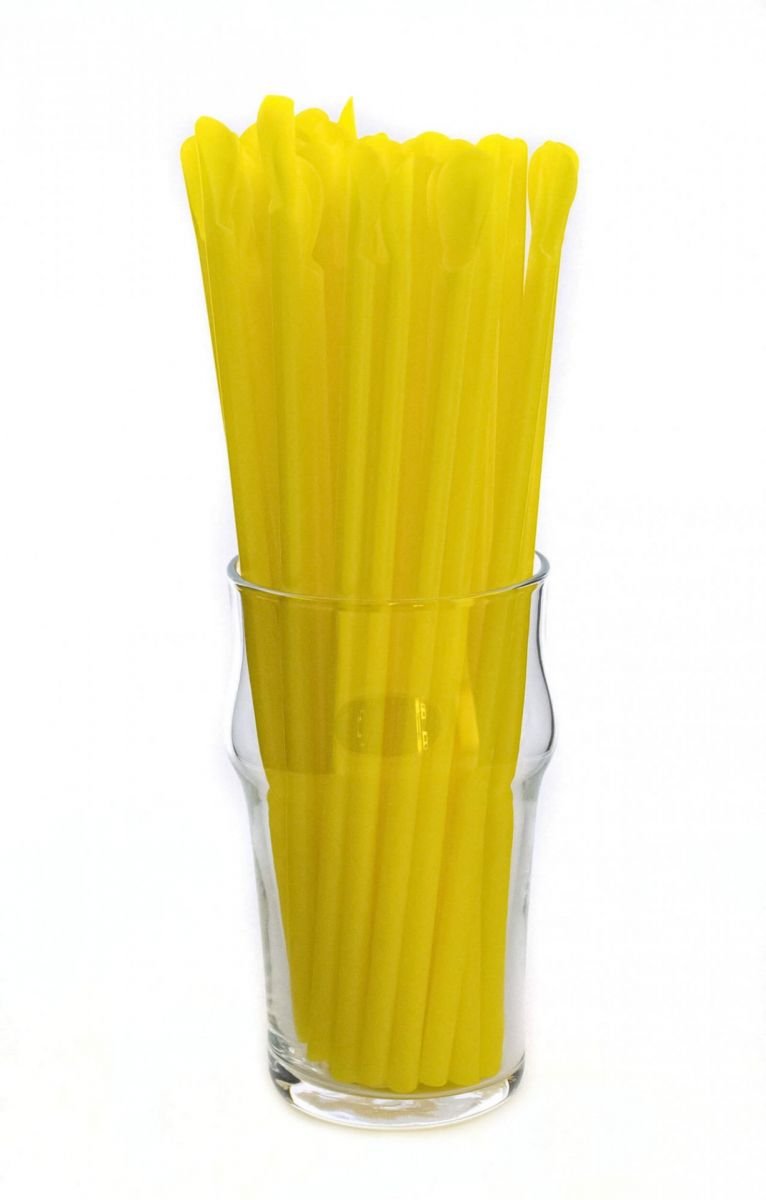 Трубочка для коктейлю з лопаткою жовта 6×200 мм 100 шт