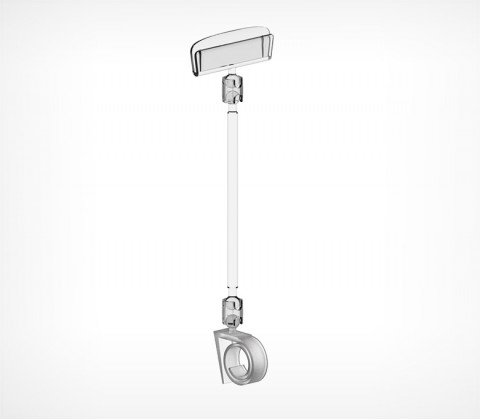 Універсальний власник цінника-равлик, що дозволяє кріпити цінникоутримувач на посуд, продукти, край полиці різної товщини. Кут нахилу цінника регулюється за допомогою шарнірів. Три варіант висоти ніжки - 0, 50, 100 мм.